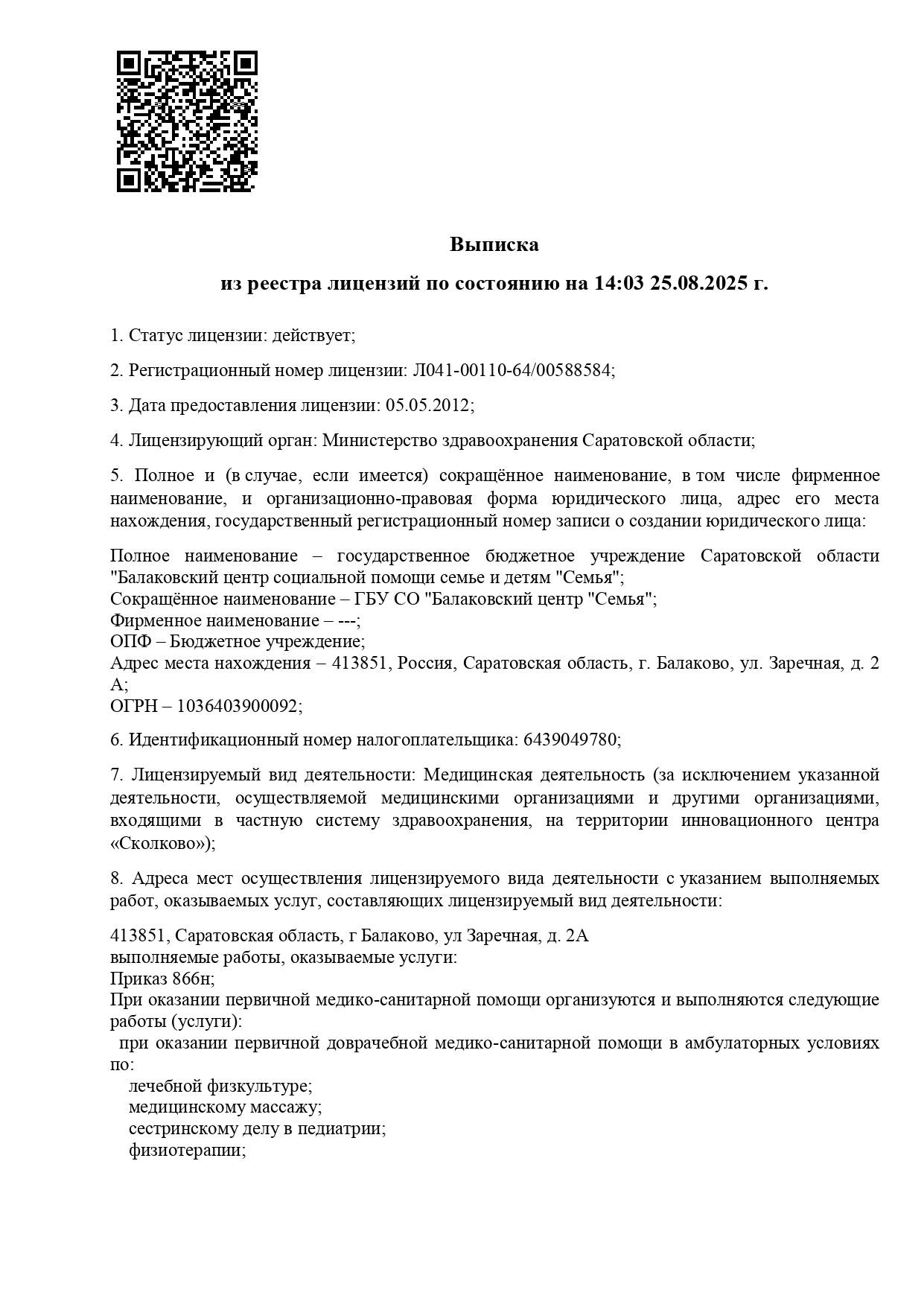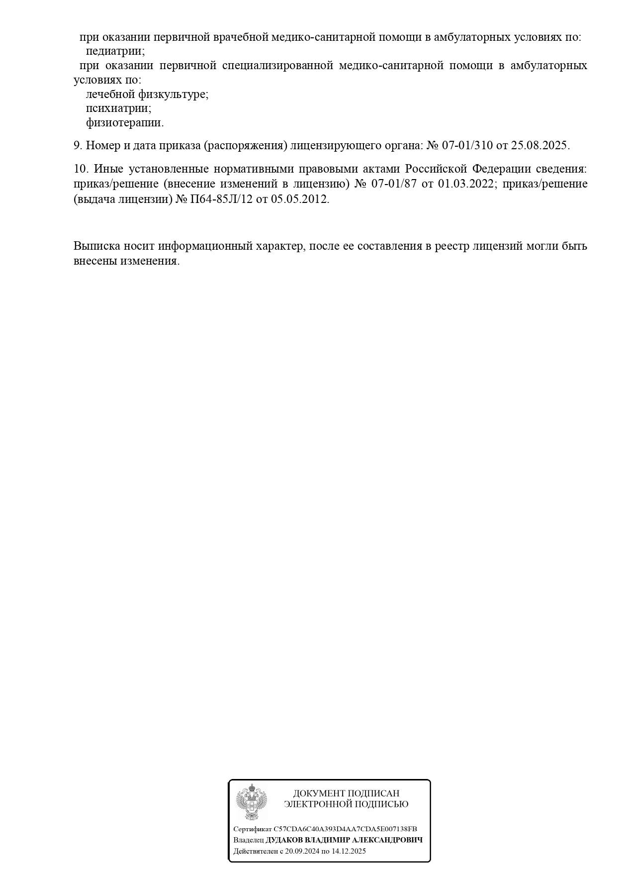 Выписка из реестра лицензий по состоянию на 25.08.2025 г.